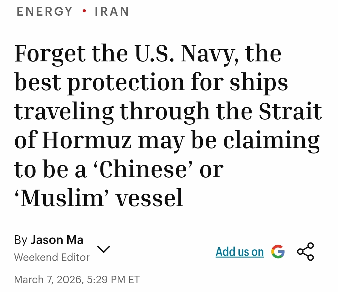 >>2727717BRICS-friendly media has reported that China has been pressuring Iran to open Hormuz. I hope to fuck that letting the Chinese ships through satisfied them.
