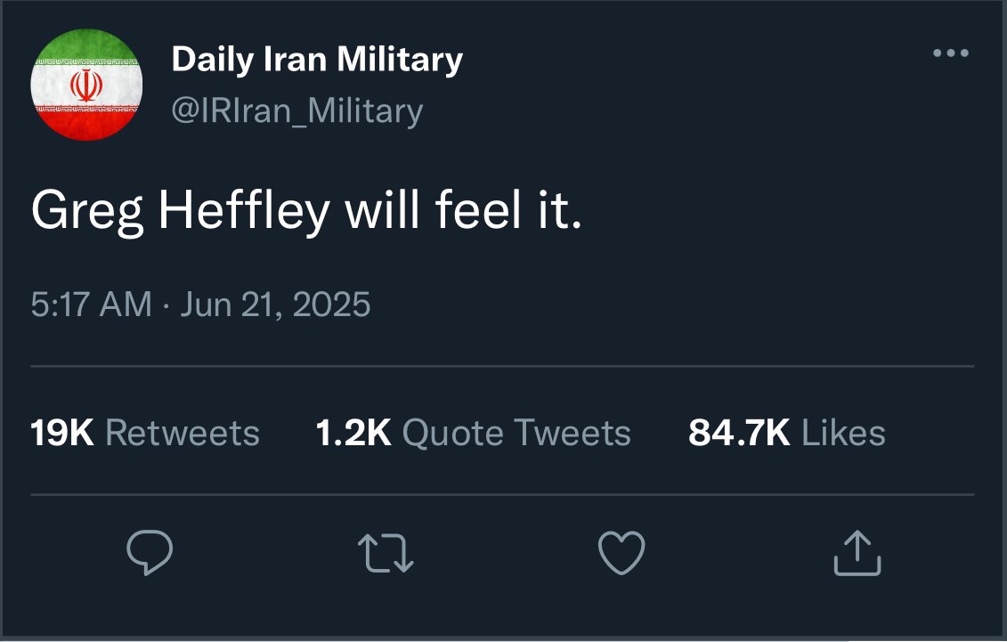 Iran saying it's captured US soldiers, including two generals, but then not releasing any proof… that's a fizzle signal.