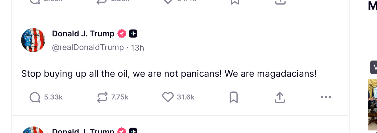 inb4 he's telling MAGA to stop using cars, to use bicycles instead.