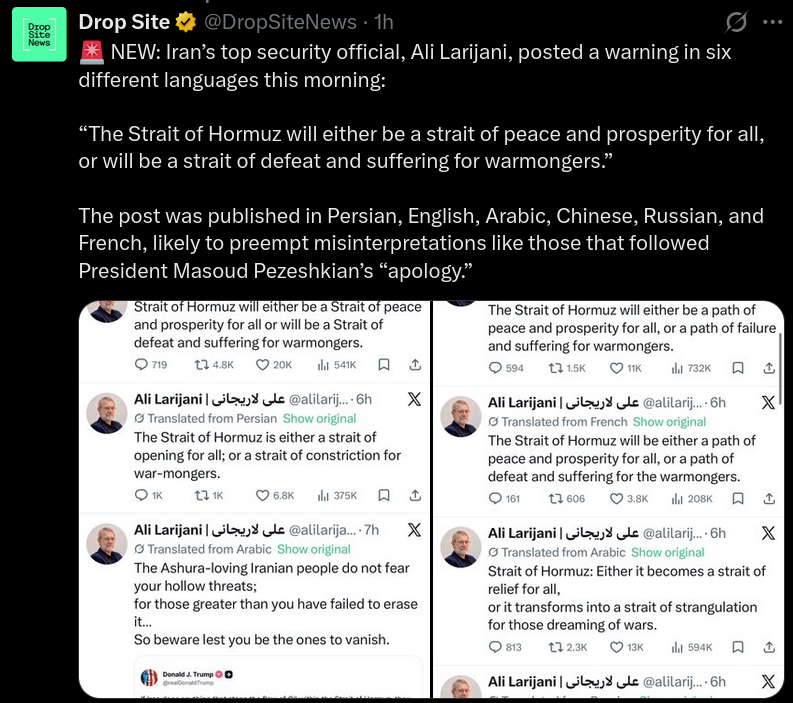>As DropSite News reported, Iran is both intensifying its efforts and shifting its targeting, since it regards part of its campaign as adequately completed for now: