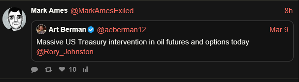 >Last but not least: if you look at the Janta Ka or Daniel Davis Deep dive segments, which include decent-length clips of Trump’s latest public appearance, even though his vocal timbre sounded pretty normal, he looks absolutely terrible. And his white matter disease seems to be progressing. You can see body twitches at some points in these videos, such as his arm jerking. This is a symptom of end-state dementia too.https://www.nakedcapitalism.com/2026/03/iran-war-administration-succeeds-in-talking-down-oil-price-to-below-100-as-trump-seeks-off-ramp-to-opposition-of-pentagon-and-hawks-iran-continues-to-reject-talks-announces-increase-in-strikes-po.htmlIf the oil markets don't launch like a Fattah missile, they're officially retarded. Even if the war ends soon it'd take weeks to fully de-mine the strait (supposing an extensive effort). Throughout that time marine traffic would only slowly increase as it gets more de-mined, rather than quickly recovering.
