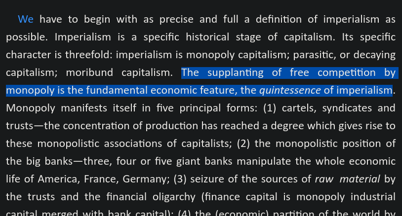 lenin might even say that it is one of the reasons why imperialism is moribund, and rotting alive, since one of the principle features of monopoly, being the quintessence of capitalism in its imperialist stage, is its overripeness, its tendency not to build productive forces, but instead to live off rent, to cannibalize productive forces, and in doing so to become its own grave digger.