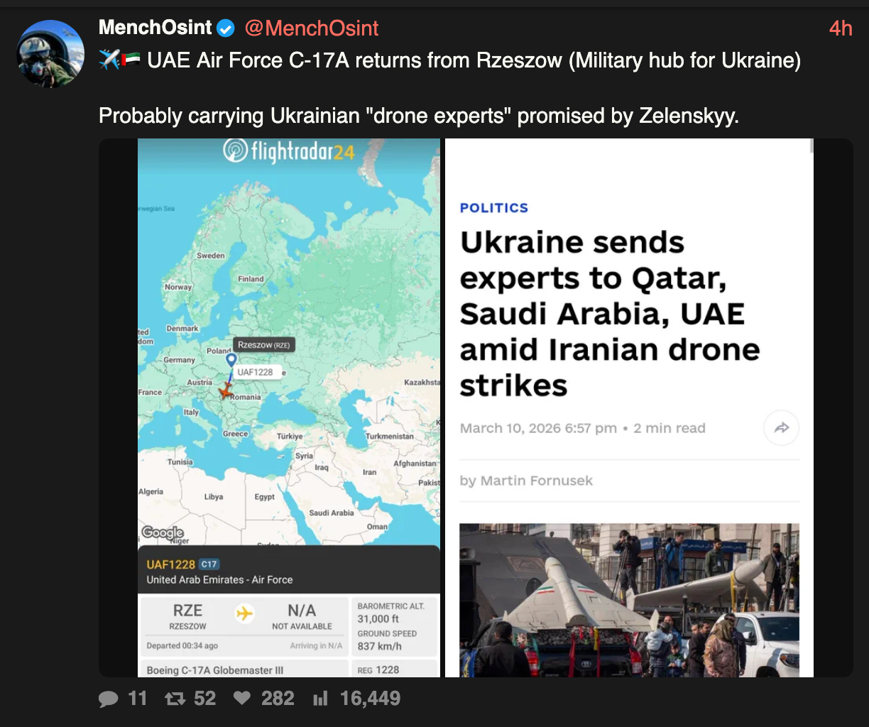 >I think this explains why President Trump called Vladimir Putin. The Kremlin has provided a readout of a recent phone call between U.S. President Donald Trump and Russian President Vladimir Putin that occurred on March 9, 2026 (Monday) and lasted about one hour. It was described by Kremlin foreign policy aide Yuri Ushakov as “frank,” “businesslike,” “constructive,” and “serious.” The conversation was initiated by Trump. The primary focus of the call was the US and Israeli war with Iran, with Putin sharing proposals for a “quick political and diplomatic settlement.” This included references to his prior contacts with Gulf state leaders, Iran’s president, and others.