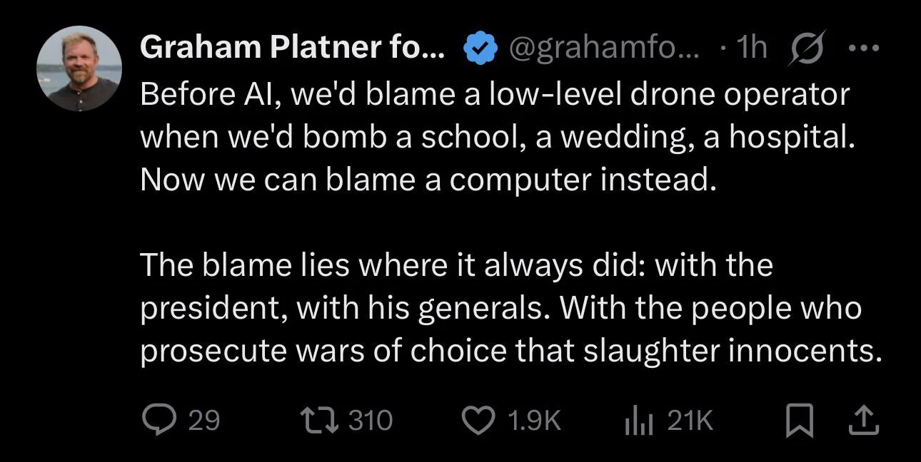 >>2733948>wars of choice"Israel has the right to defend itself against Americans who are Hamas terrorists" - John Fetterman and Graham Platner and Zohran who are all controlled by the exact same Zionist Democratic PR firm