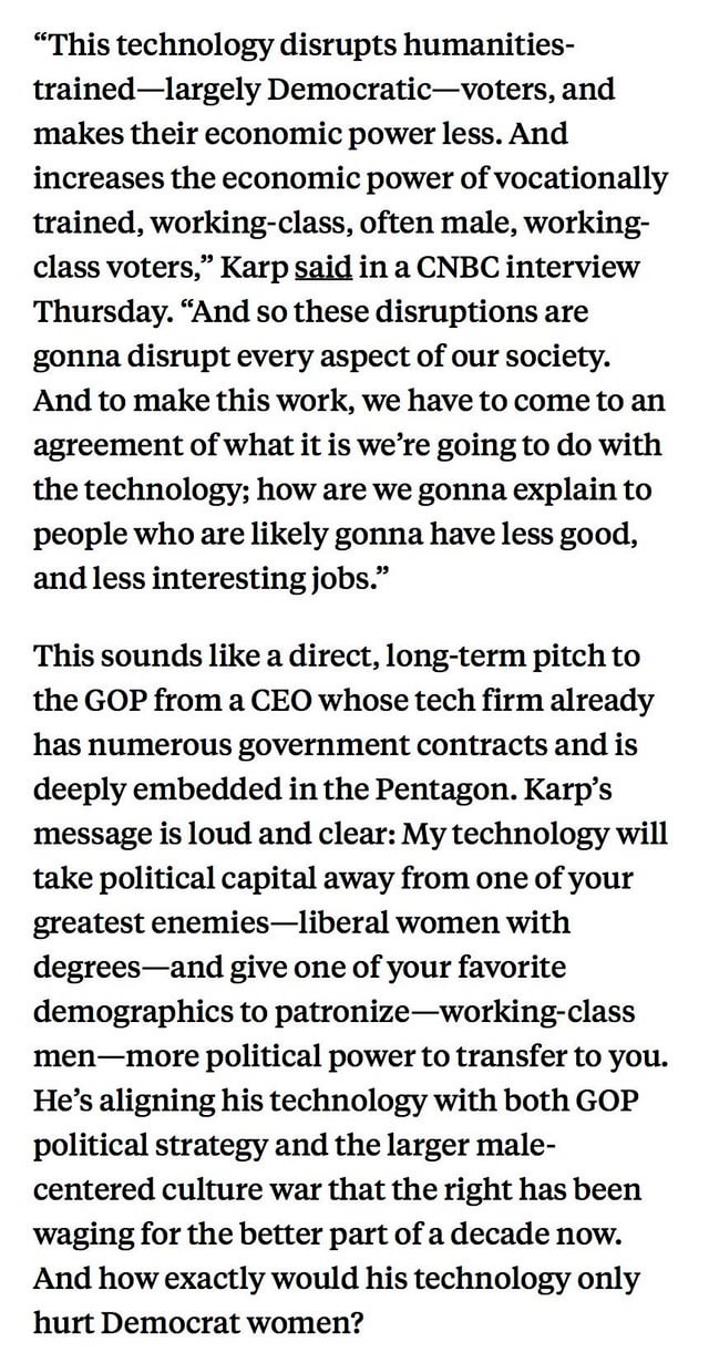 After the land grab completes, you’re now in a circumstance where the empires have nothing to do but optimize their slaves. I’m saying that I think that the point of all of this cybertechnological man on the moon progress bullshit is really just to enact forms of control on people and compete slaves between different empires.