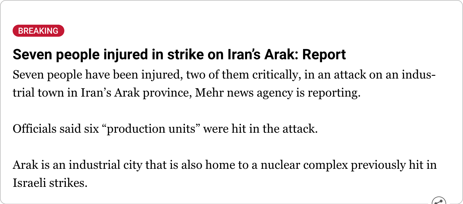 >Iran is going to work methodically to break Israel. This is not a symbolic inflicting of pain. This is something that goes way beyond this. Way beyond this. But this is it for now….