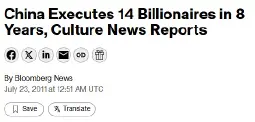 >Mortality rate notwithstanding, what's more disturbing is how these mega wealthy souls met their demise. According to China Daily, 15 were murdered, 17 committed suicide, seven died from accidents and 19 died from illness. Oh, yes, and 14 were executed. (Welcome to China.)