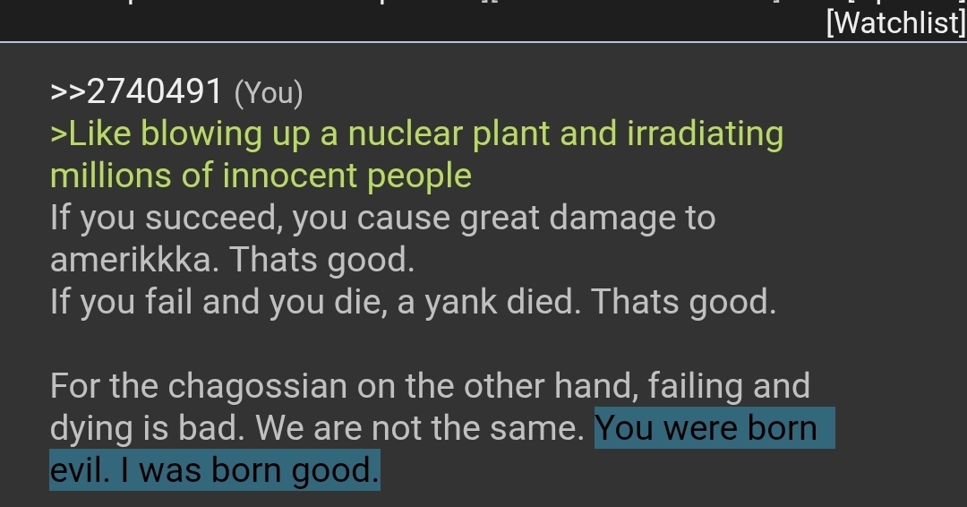 >>2741092I personally don't care that much about retards who get mad about the sanctity of the chauvinism general. The point was that being a namefag/flagposter and having what many consider to be bad takes causes people to bring up their beefs with you, especially if you then double down on those takes. See also: Chagos, gaynazianon, Houdini, etc. It comes with the territory