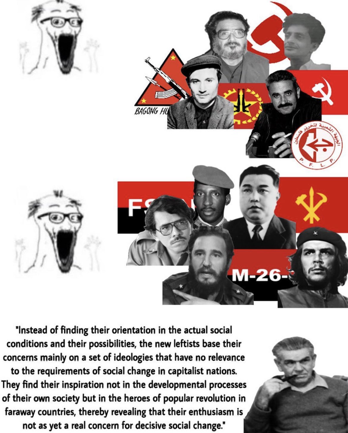 Sakaism, ethnic reductionism and mutipolar theory are now the mainstream opinion of the Western Left. There are divisions between them of course. Most importantly between the "US centric" and the "China centric". But it's safe to say that the new socialism of the fools is up and popular in the leftwing sects. How can communists work in this enviroment?