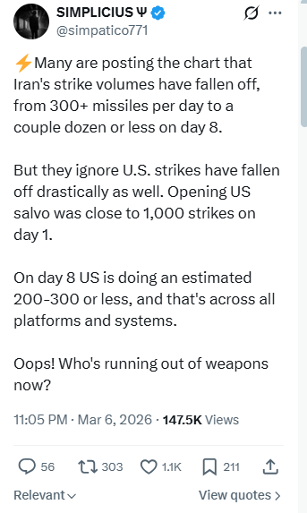 >>2742576i think they are looking at a long war, but the opening days were them establishing their counterpunch and taking out amercian bases and logistics everywhere. it would make no sense for them to keep doing things at that level forever. most of the bases are destroyed or evacuated now, and some days ago iran announced they were going to stop hitting neighboring countries, except for israel, and unless they had to respond to particular attacks from other places.
