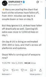 so i think now there are fewer targets and they're using more accurate missiles so they can use less. they've repulsed the initial attack, have the strait locked down and now they're dug in. they're not going anywhere and it's a war of attrition now.