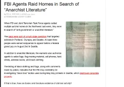 >>FBI Joint Terrorism Task Force maintained ongoing surveillance of anarchist communities across the Pacific Northwest, particularly in university towns and activist hubs. The bureau's own PowerPoint presentations from this era described anarchists as disaffected dropouts being led by "young, middle to upper middleclass, and educated" academic leaders while expressing concern they were becoming disorganized and thus harder to track