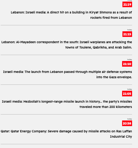 Apparently Hezb hit 6 tanks with ATGMs in the past hour near the border town of Taybeh. The Israelis are now showering the general area with airstrikes so that medevac can get the wounded IDF soldiers.