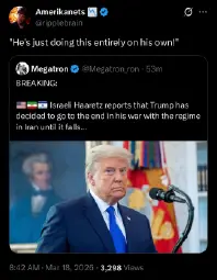 >Even if Trump were to seek a way out (many have seen his recent confused messaging as proof that he is trying to find an off ramp), it’s not clear how he can. He and Pete Hegseth have been larding the armed services, who normally can and do check misguided civilian leader, which armageddon-loving Christian Zionist zealots. Hawks like Jack Keane and Lindsay Graham, who keep selling the line that Iran is on the verge of falling apart, still get plenty of air time on Fox. And Zionist billionaires are likely stiffening Trump’s spine in private. So the costs of the war, both economically and in further loss of what is left of the appearance of US primacy, will have to mount much higher before they could conceivably weaken the sway of these centrally-placed forces.