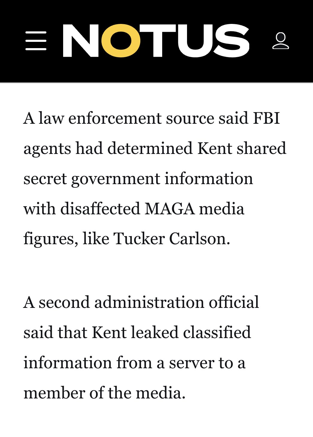A second administration official said that Kent leaked classified information from a server to a member of the media