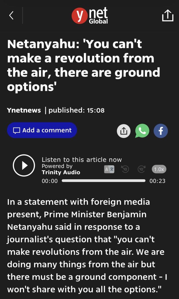 A revolution cannot come “only from the air,” he went on. “You can do a lot of things from the air, and we’re doing [them,] but … there has to be a ground component as well.”