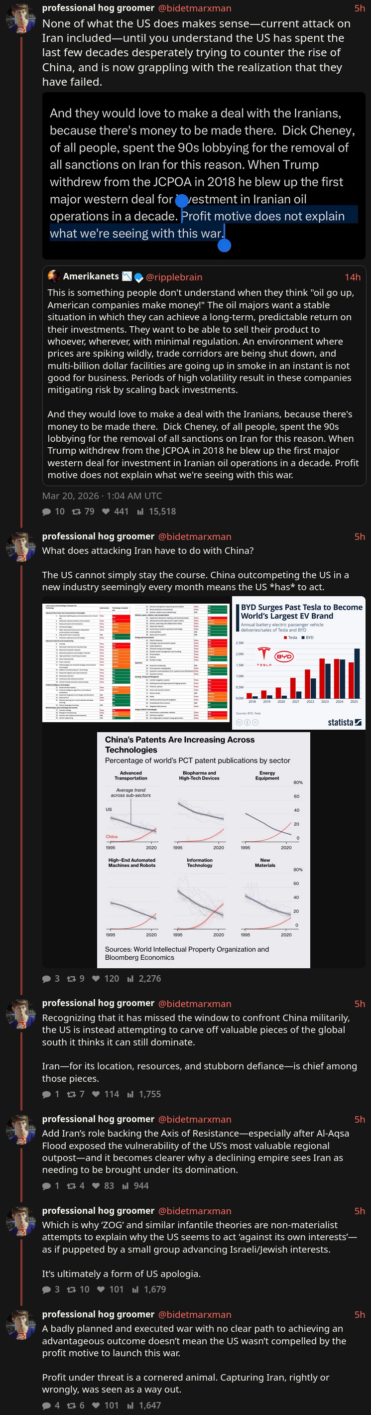 >>2747919no they still are because barbarism undermines capitalism. you cant have private property on a warlord planet with no states. no capitalists, no capitalism. that is the whole point of the analysis, that capitalism contains its own contradiction within it, not that communism is inevitable. like i said many posts ago you misunderstand marx and are projecting your misreading, even reasserting it after being corrected. just go back to reddit already we dont need to be doing leftism 101 in the current news thread.
