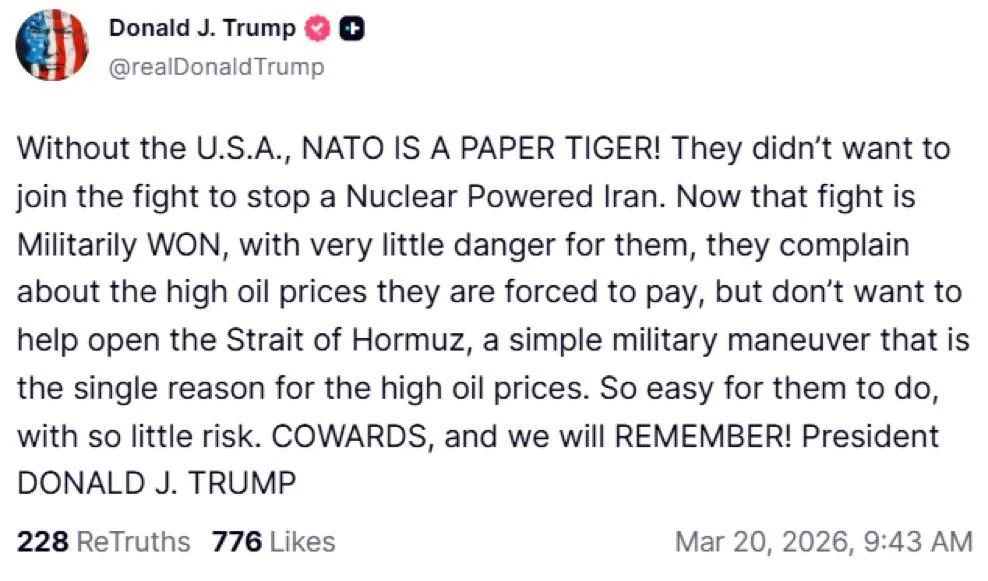 On Tuesday Trump said most NATO members have informed the U.S. that they don't want to get involved. "WE DO NOT NEED THE HELP OF ANYONE!" he wrote on Truth Social.