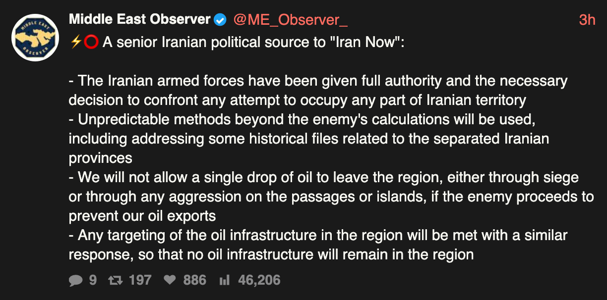 > Iraq has declared force majeure on all oilfields developed by foreign oil companies as the Middle East war has disrupted navigation through the Strait of Hormuz.This is amazing! The CPA economic regime created by the Crusaders in 2003 is coming to an end at last.