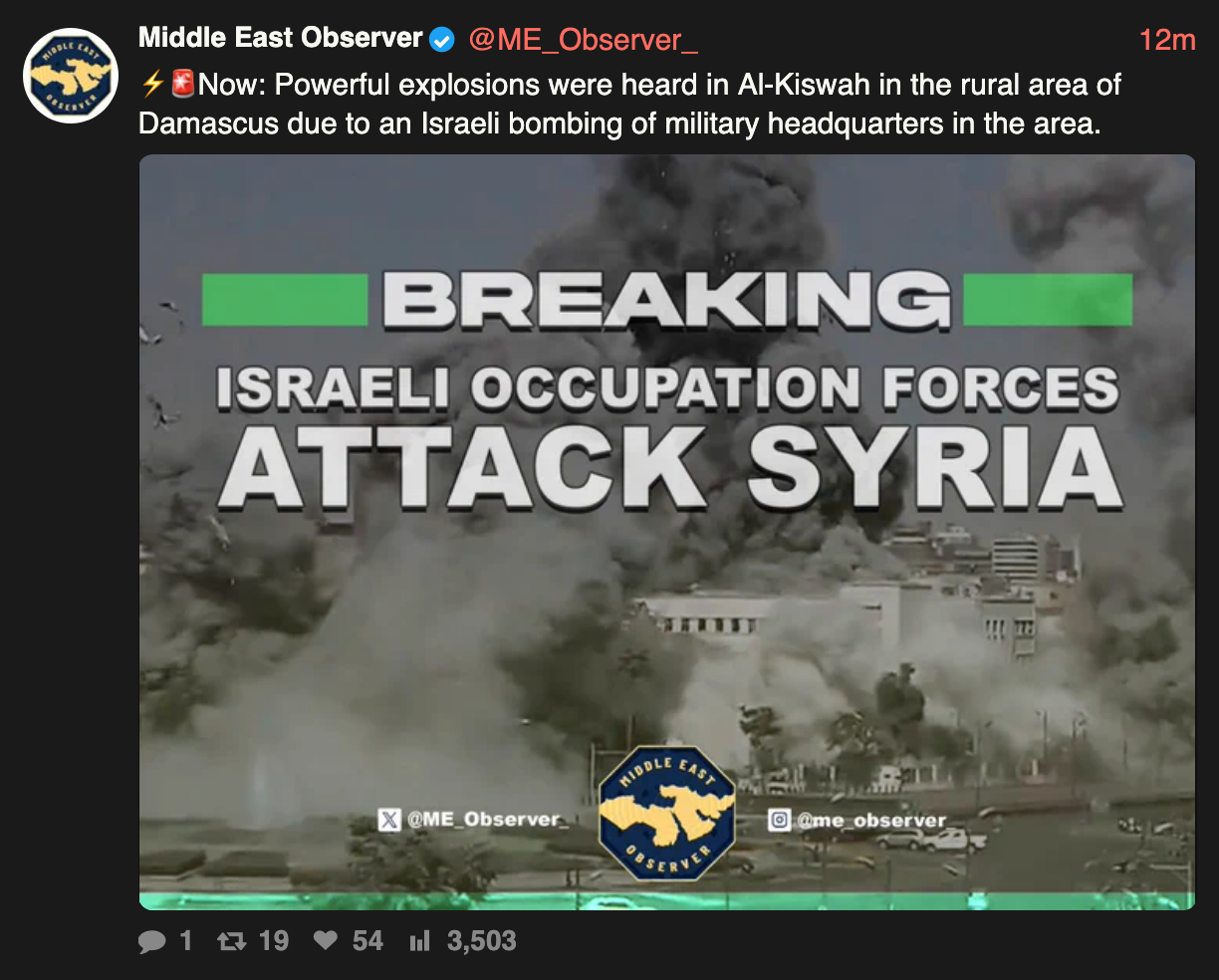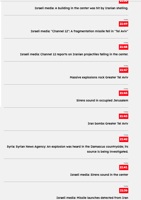 This comes as the Israeli military reported incoming missile fire from Iran three times in the last two hours.