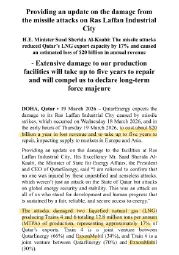 The CEO of QatarEnergy, Saad al-Kaabi, has given an interview to Reuters and said that the cost of this attack, which damaged two facilities, two trains out of 14 in that huge facility, is going to be worth about $20bn in lost revenue per year now.