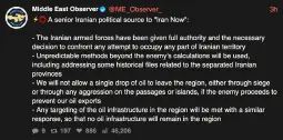 The Revolutionary Guard confirmed that the operation was a complete success, adding: "You will become miserable… This wave is still ongoing."