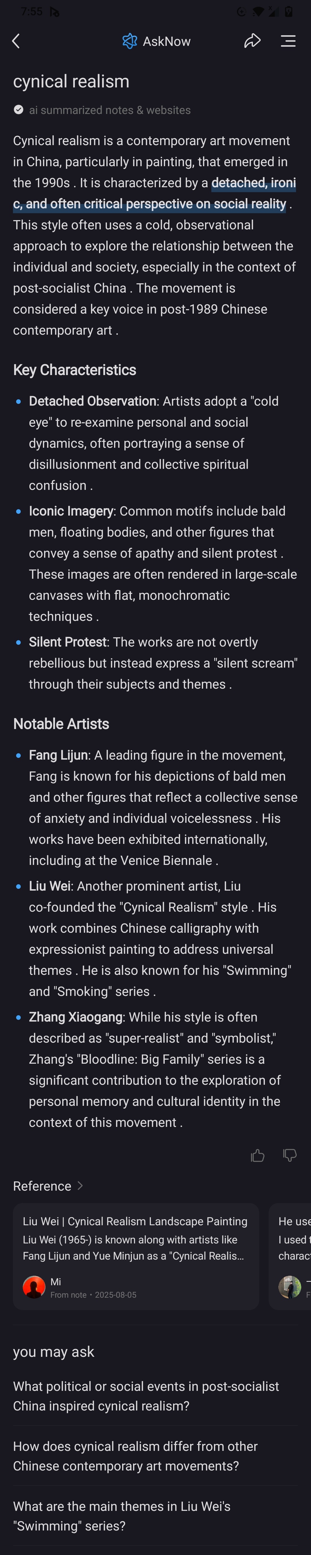 What does /leftypol/ think of cynical realism? It seems to be an artistic movement in China, and many of the name associated with it live there (in the mainland), but when I asked deepseek about it, it's censorship got triggered and it refuses to give me more information about it.