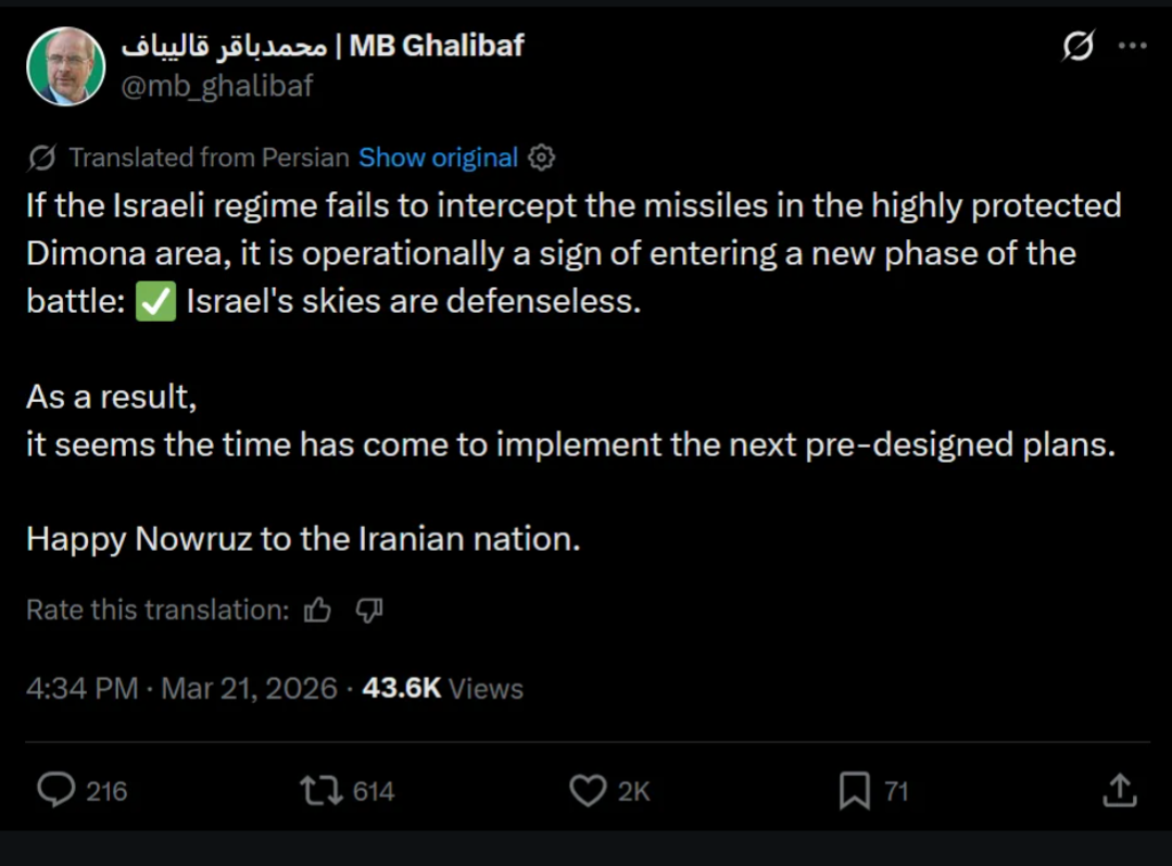 >>2749273that doesn't destroy the nuclear armed ballistic missiles Israel already has and which are ready to launch