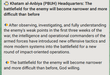 For his part, the spokesman for the central "Khatam al-Anbiya Headquarters" announced that more modern and advanced systems have entered the battlefield as part of the new round of impactful operations.