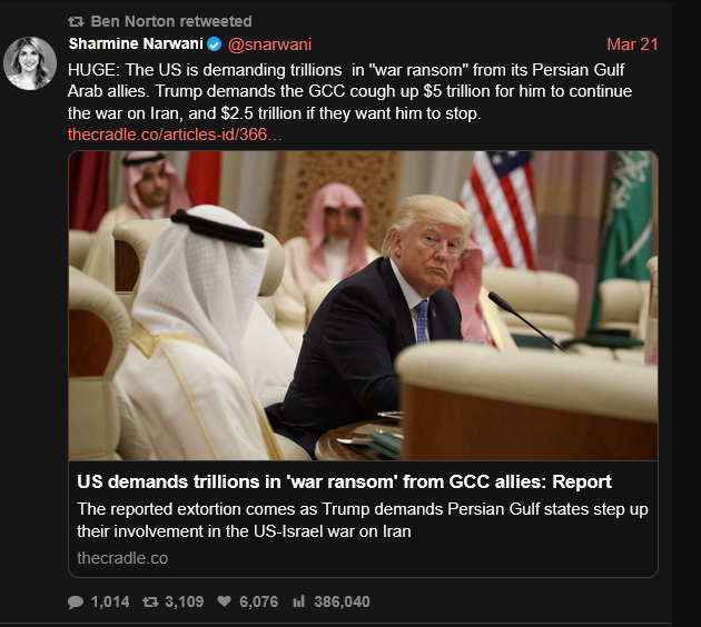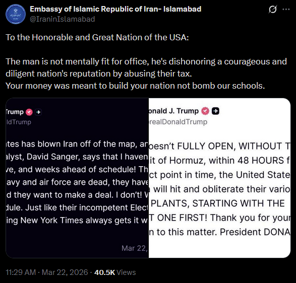 As we’ve been reporting, Ghalibaf earlier threatened that Iran would strike infrastructure and energy facilities across the region after Trump said the US would attack Iranian power plants if Tehran doesn’t fully reopen the Strait of Hormuz.