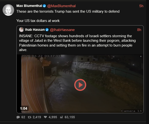 <The foundation of Israel, and Israel’s ongoing policies, have contributed to massive suffering for the Palestinian people. And the country’s actions, as well as its alliance with the U.S., fuel anger around the world at Israel. But Israel did not, and does not, cause antisemitism.https://theanarchistlibrary.org/library/april-rosenblum-the-past-didn-t-go-anywhereChange my view: Israel is singlehandedly fucking it up for the Western bloc and Russia is playing a similar role for BRICS/anti-imperialist bloc. The first bloc that can tamper down on its weak link will secure a massive advantage and Israel is far more of a liability than Russia is.