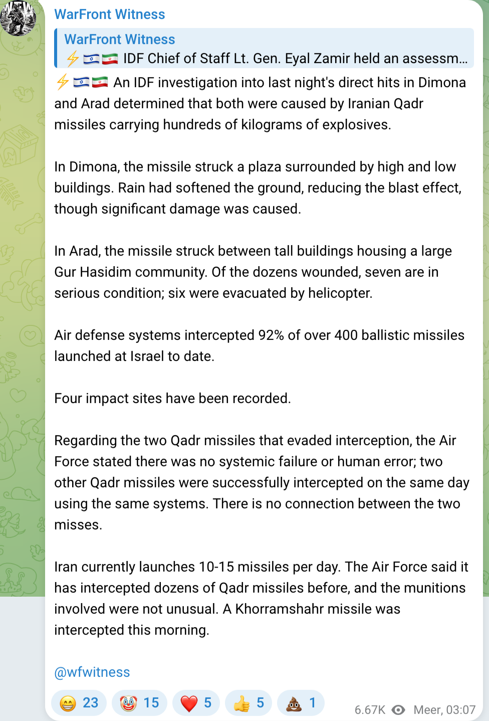 Any indications that this hit in Dimona actually struck anything of importance? Looks like we've got so many videos because the Israelis want to show that it only hit civilian areas.