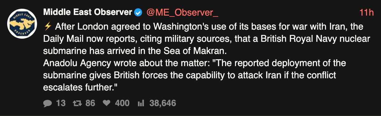 I guess they could be on a nuclear sub but I wasn't aware of Israel having nuclear subs.