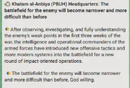 He stressed that "the battlefield will become narrower and more difficult for the enemy compared to what it was previously."