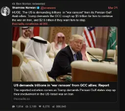 >>2749305The way he has been trying to scam Gulfies with their shitty "interceptor drones" in exchange for shit that can actually work like Patriots and fighter jets is so fucking funny lol. Respect the hustle.