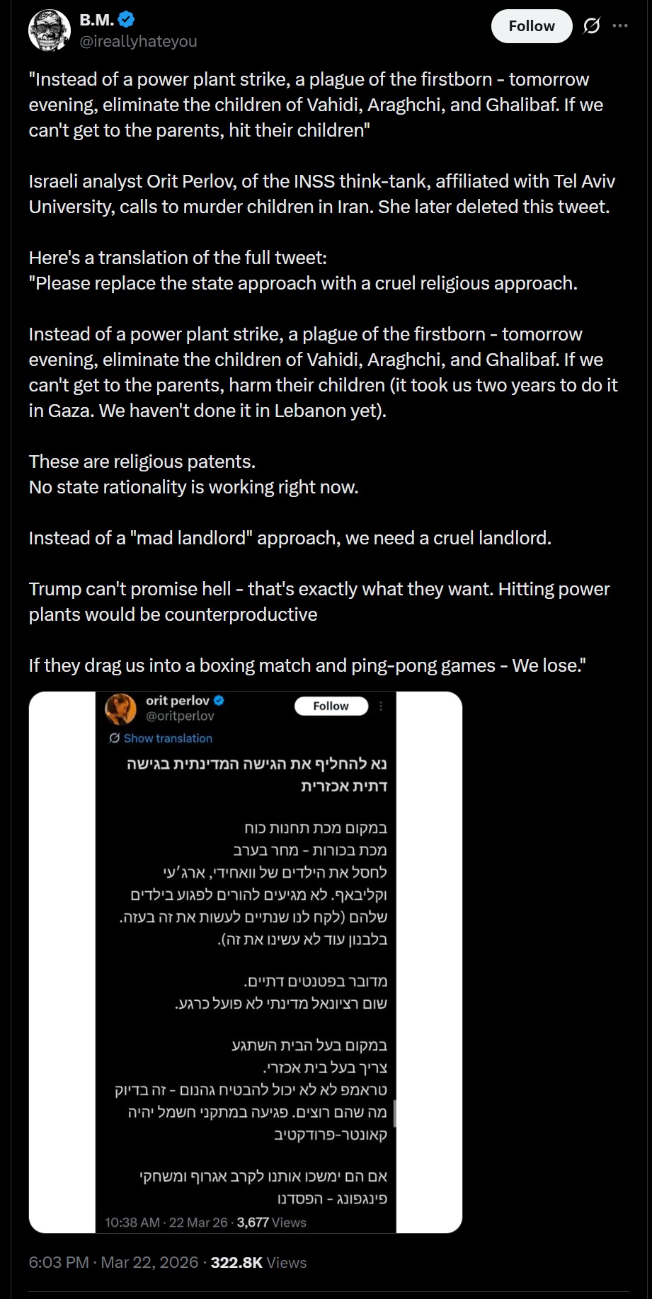 >>2751253I remember EB being in power in the late 1990s when he was touted as the one about to reach a deal with Arafat. Now I don't remember all the story of his squabbles with Satanyahu and the entire zionist body politics have been drifting to the most lunatic far right for a few decades that the "labour party" would have evaporated anyway - that's the same everywhere in the imperial core in that regard. It's also indicative they are wheeling out someone that is clearly compromised with/by the Jeffrey loli-network - Satanyahu even called him out at least once for that recently - and is really old - he's past 80, and Satanyahy himself is approaching is age. Or at least he was before he transmutated into pure ai slop.