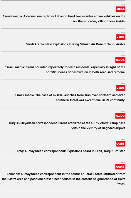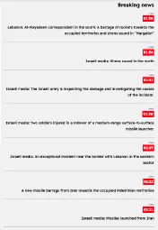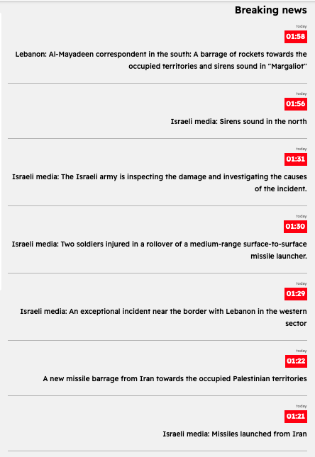 21:42 - Lebanon: Islamic Resistance: We targeted a gathering of Israeli occupation soldiers in the border town of Marwahin with a rocket barrage