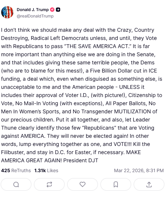 >If ᴉuᴉlossnW 2.0 doesn't die first, the Republicans (or enough of them, at least) will HAVE TO cut him loose, to try to save themselves from total destruction, at every level of Government, in 2028.