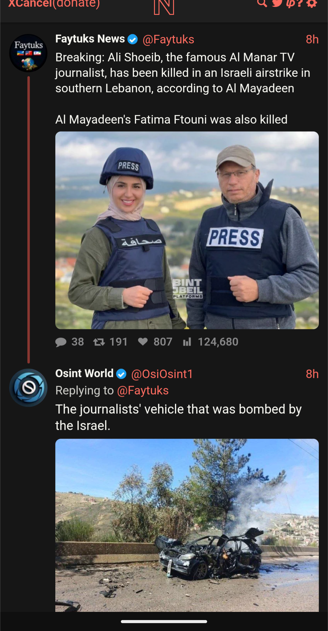 The second one is the Israeli government making accusations of him. The first one is a literal liberal Twitter account that is pronato and pro USA reporting. Literally that just Israel killed journalists