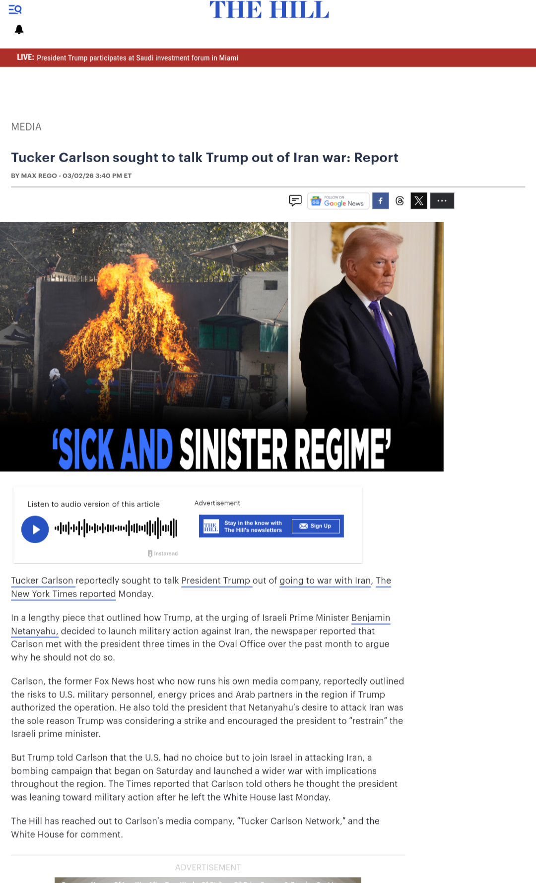 Just lmao at you running with the tucker is controlled by Qatar bit. Zionist propaganda