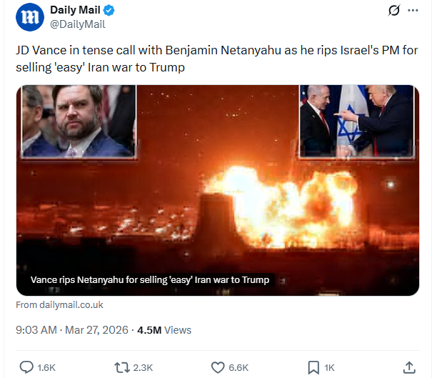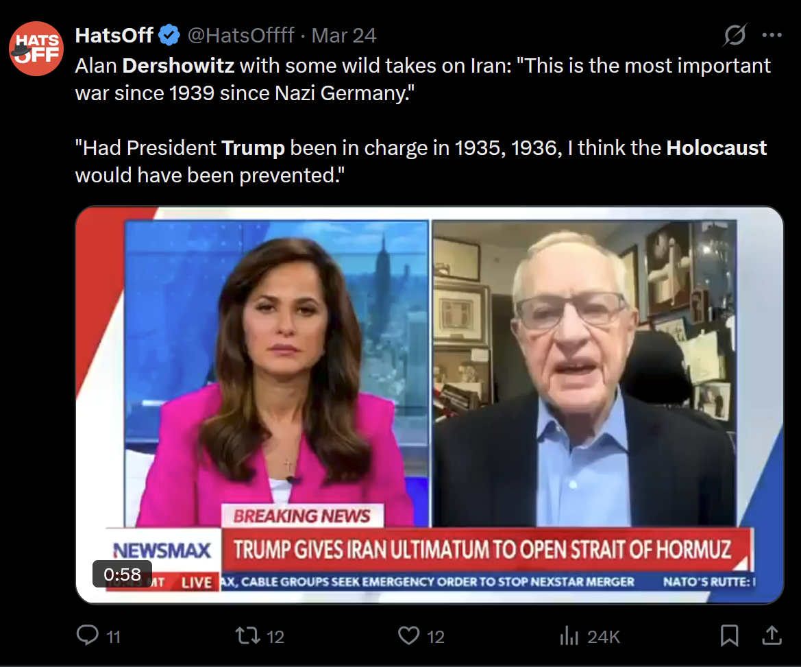 Tucker has has 18 million twitter followers, 6 million YouTube subs and the 7th ranked podcast on Apple and Spotify. He has immense influence and is using it to platform people against Israel, against war with Iran and literally even people like the Iran president