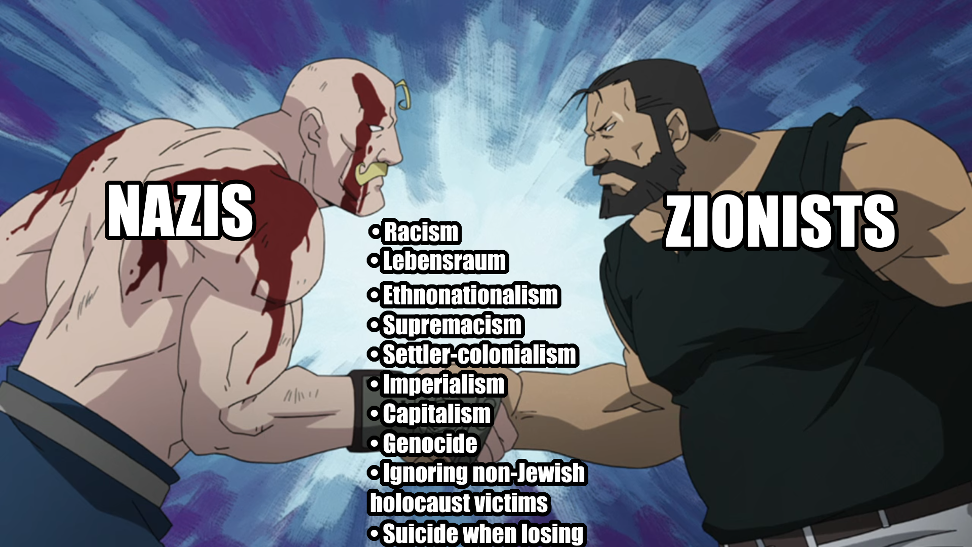 Israel is an entire country that runs on this logic. They bomb and fuck everyone up which will obviously make everyone hate them, but then their leadership and media insists its all because they're poor jews, thus making them more rabid about their hatred of the out-group and their loyalty to the in-group.