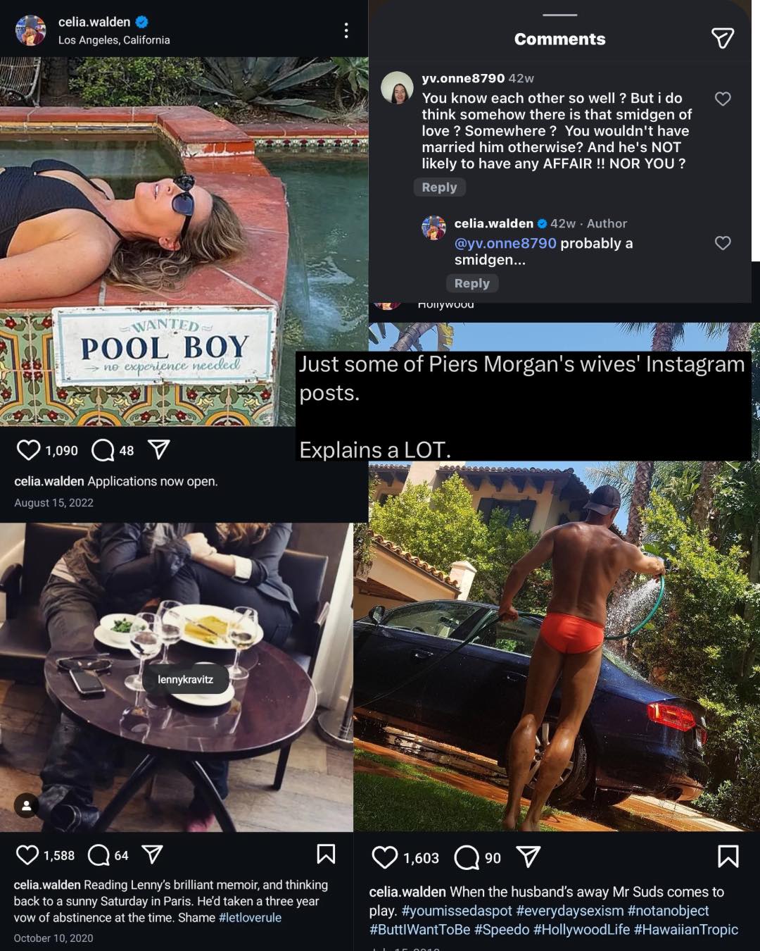 >>2758392I think she is just a golddigger and hates him. If she was a real hotwife, she would not make it this obvious and keep it private or just say it openly. These people are elite orbiters so they won't care what the plebs think.