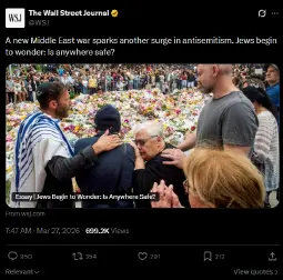 >>2757565>Threadly reminder that the most heart breaking aspect of this conflict is the rise in online antisemitism. Remember to report all antisemitic content you see. If you SEE something SAY something!>>2757834I'm glad the Wall St Journal is paying attention to the real pressing matters right now for the globe: Online antisemitism