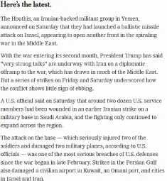 The war has just become a lot more complicated. Yemen had been reserved during the war. But the Houthis believed they were going to be [Israel’s] next target, so they decided to take the fight to Israel, according to some of their officials. The main card for the Yemeni group is the Bab al-Mandeb strait. With the Strait of Hormuz closed off to US and Israeli shipping, if the Houthis also decide to block Bab al-Mandeb, it’s only going to make the situation economically a lot worse for Israel.