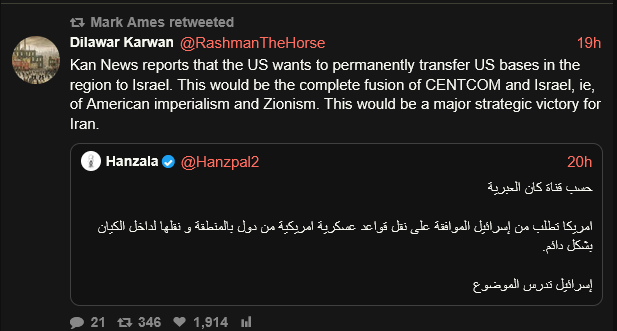 >>2760801>Move middle-east bases to IsraelAre they any safer there than they are elsewhere in the region? I guess they can pool all defence missiles to Israel and stop the pretense that any of the arab states matter of that US is there to protect them.