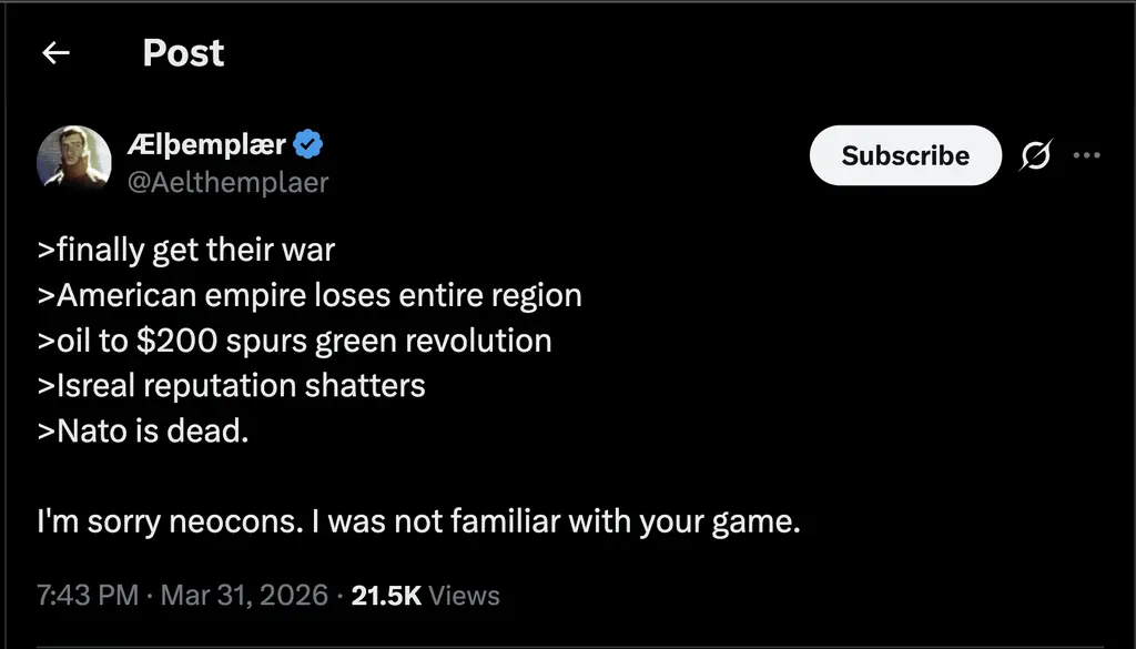 trump using ICE as his personal fascist brigade, and engaging in foreign adventurism is just locking in the death spiral. the US is strategically incapable of disengaging from the 2026 gulf crisis, and structurally incapable of doing an infrastructure spend to fix their economy.