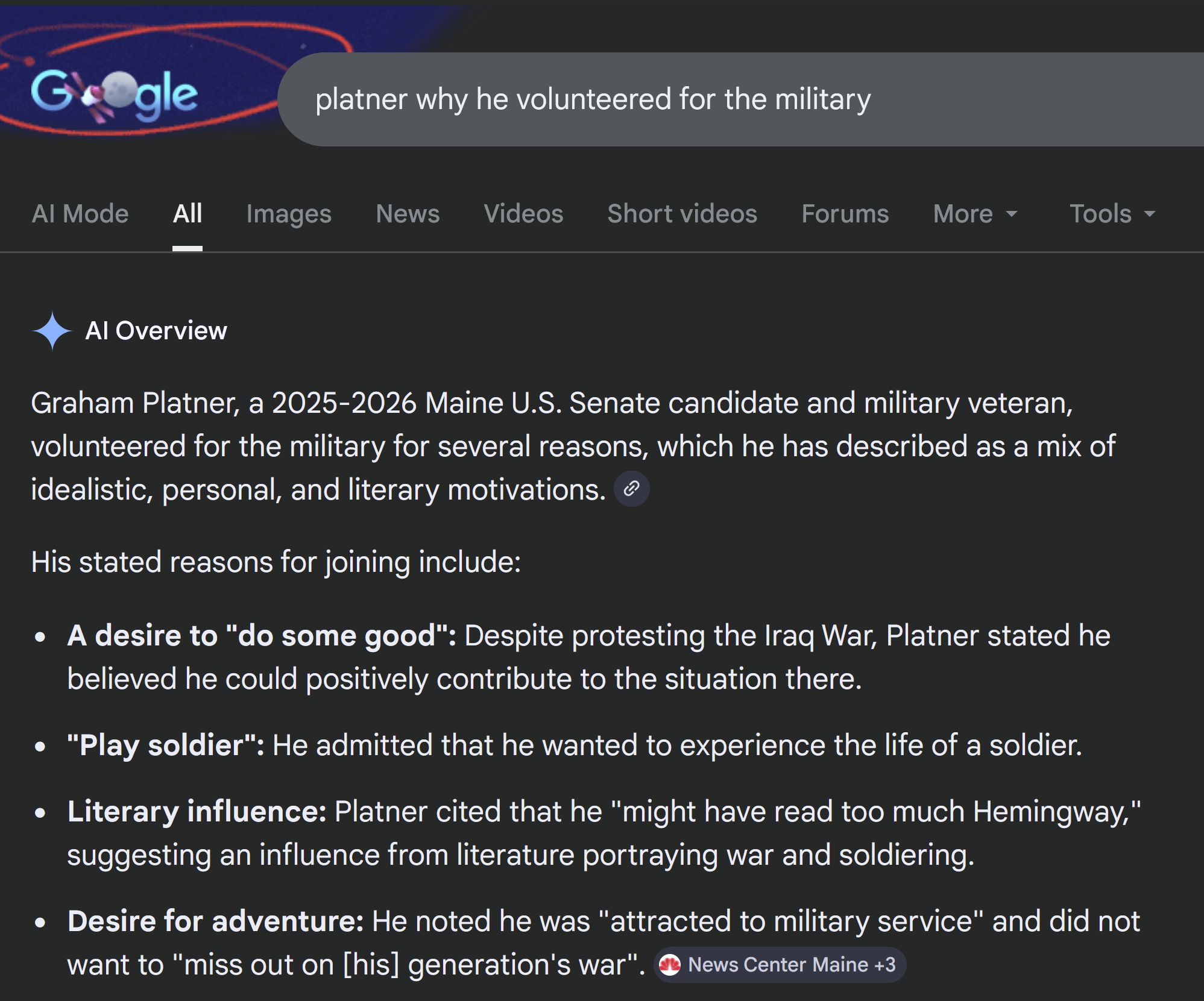 >He was always against the Iraq war>BUT he decided to enlist out of a sense of patriotism, and since he's a good guy, having a good guy in a bad situation makes it better, he'd prevent his fellow soldiers from doing REALLY BAD stuff, like Abu Ghraib tier bad, not just illegally invading and accidentally killing civilians tier bad>Then he joined Blackwater because he realized being a ZOGBot was his life calling because it was so much fun and the pay is really good. I guarantee the people who post all day about Platner either do not live in the US or couldn't name their congressional representatives or their stances on Israel.