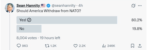 >>2763828I hope he announces we're withdrawing from NATO tonight.