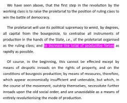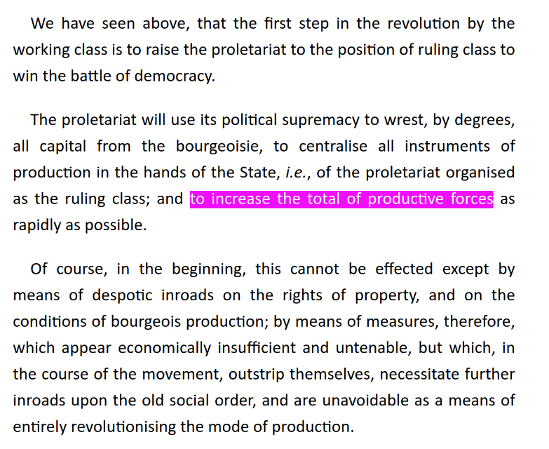 but if we look at reality capitalists are fine not actually automating things and just enforcing artificial scarcity bullshit or completely monopolizing their respective markets thanks to cycles of crises that destroy their competition without needing to actually develop the productive forces at all